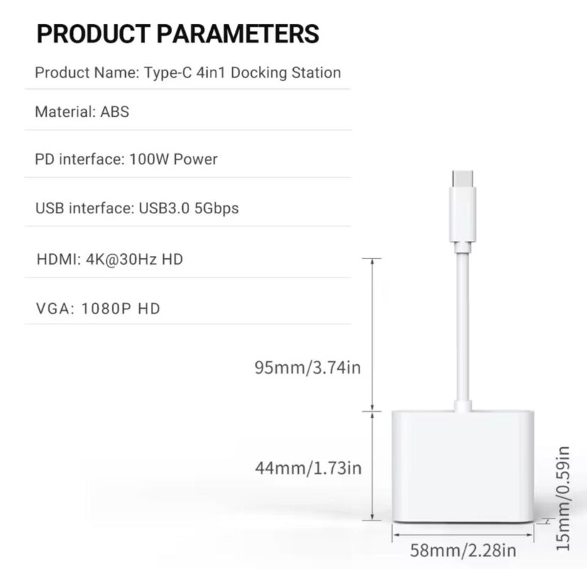 Adaptateur multiport pour MacBook Pro hub USB C Dongle en aluminium 4 en 1