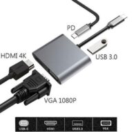 Adaptateur multiport pour MacBook Pro hub USB C Dongle en aluminium 4 en 1