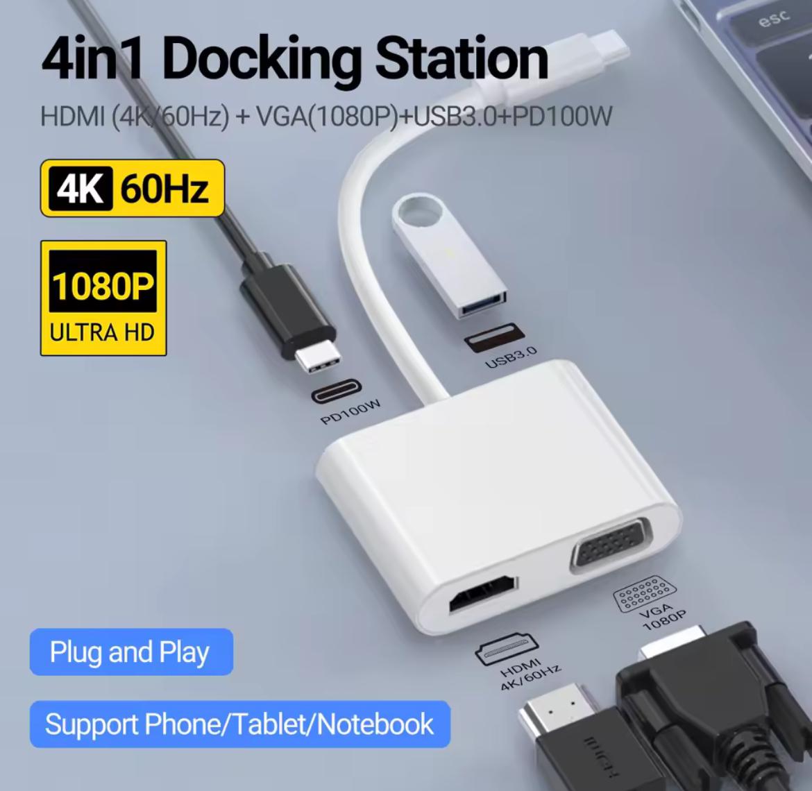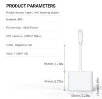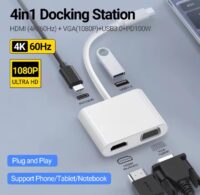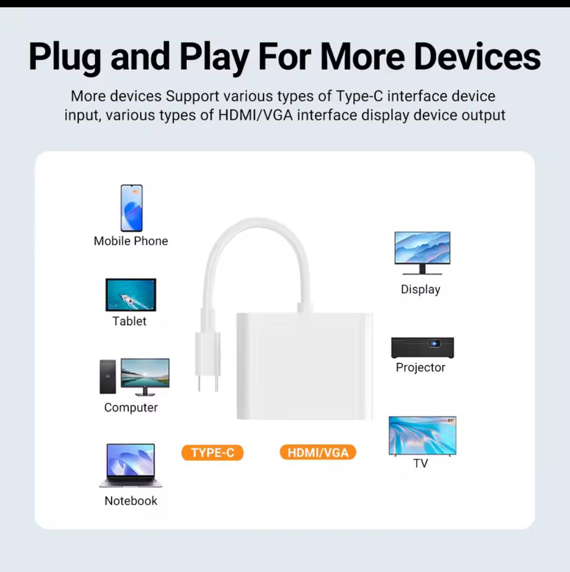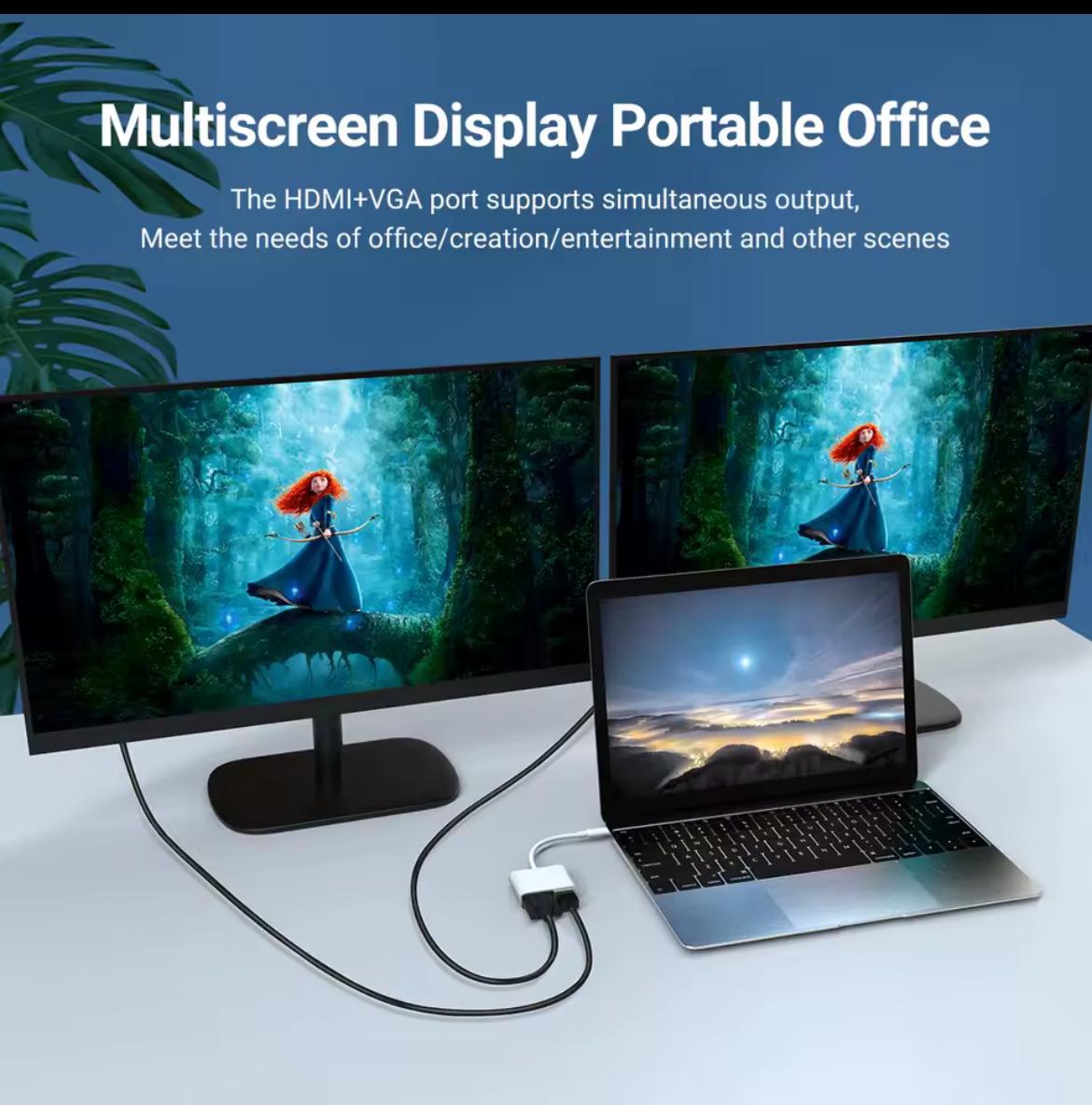 Adaptateur USB C vers HDMI VGA 4K60Hz, Type C vers VGA vers USB C Thunderbolt 3 pour adaptateur double moniteur Compatible avec Nintendo Switch