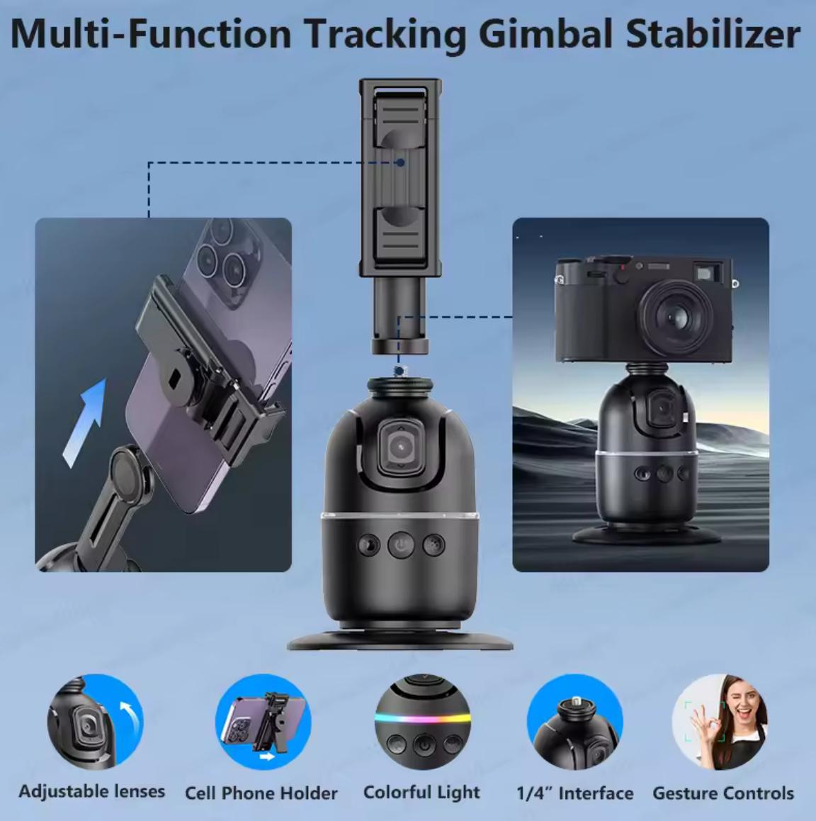 Trépied de suivi intelligent pour appareil photo Smartphone, lumière colorée, Rotation à 360 °, mise au point de suivi, cardan pour la photographie en direct
